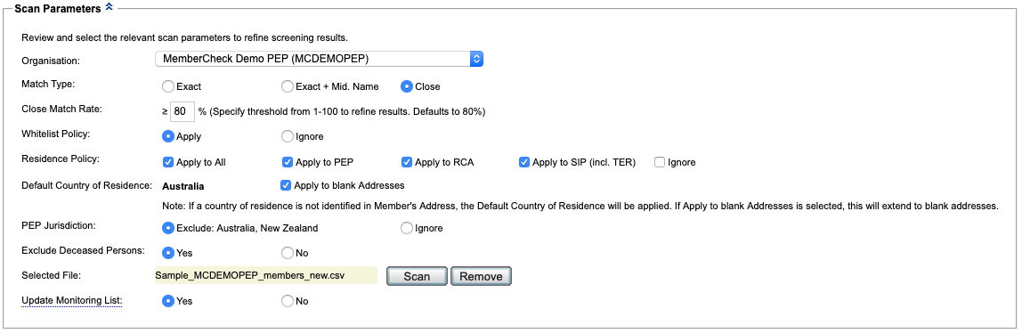 Member Batch Scan (PEP & Sanctions)¶